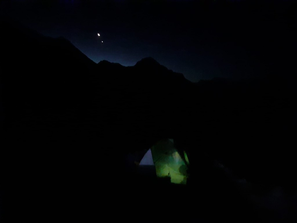Subimos hasta la base del glaciar y vimos que también habían varios vivacs un poco más arriba, os los recomendaría porque se veían más planos y despejados que los que estaban cerca de las grutas.