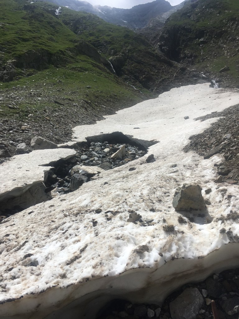 Pasamos por varios neveros, siempre con cuidado que no se abran y en zona con agua no resbalar…