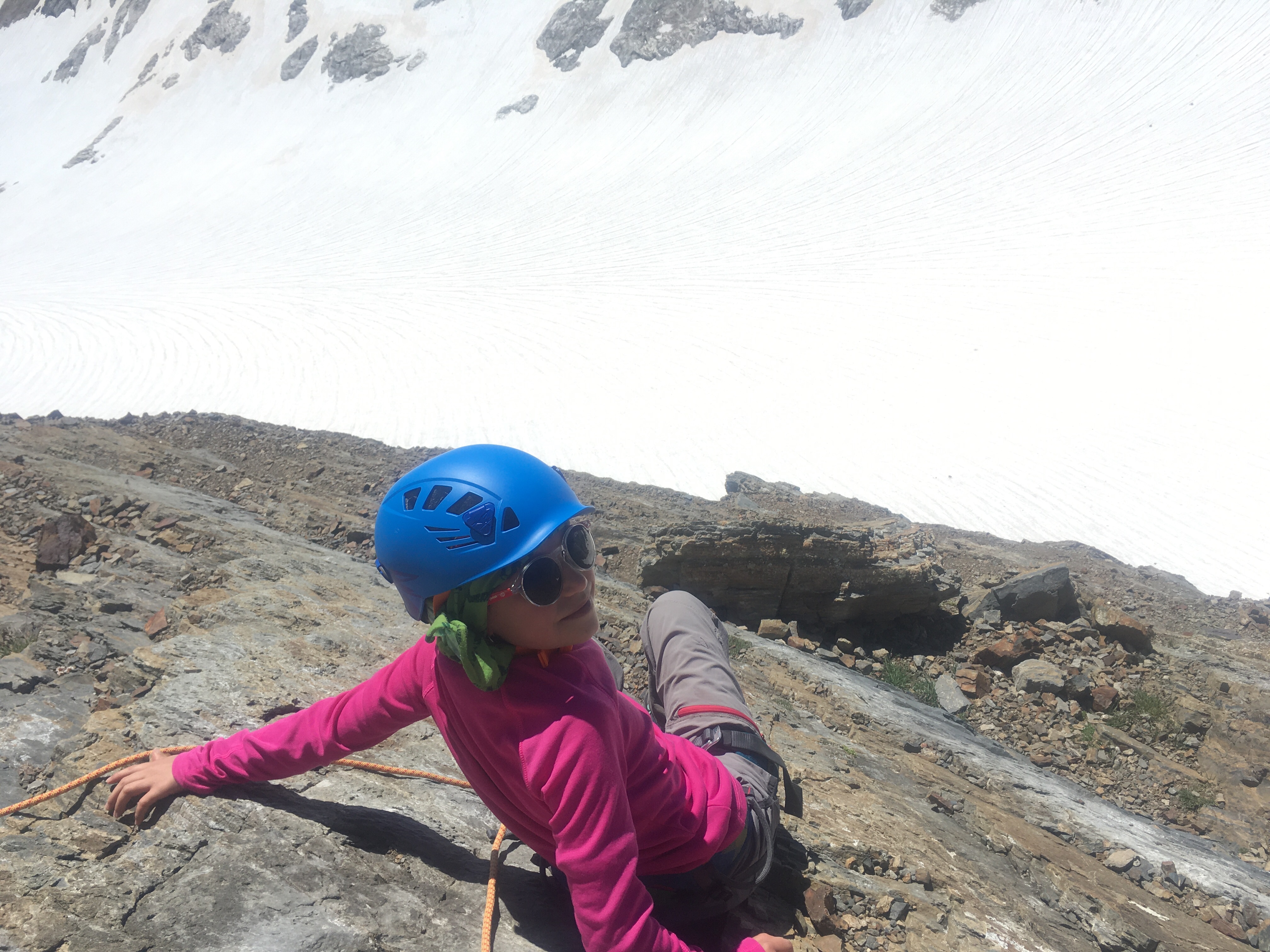 Pero tengo que destacar en este punto que la auténtica campeona fue mi sobrina que con tan solo 11 años había aguantado todo el glaciar y la subida a la cima ella sola. Sin duda todos los que nos cruzábamos la felicitaban, y no es para menos! Aunque también hay que decir que no es una temeridad de sus padres, ya que desde que nació prácticamente suele ir a la montaña y ya había subido otras cimas como Monteperdido o el Mulhacén.