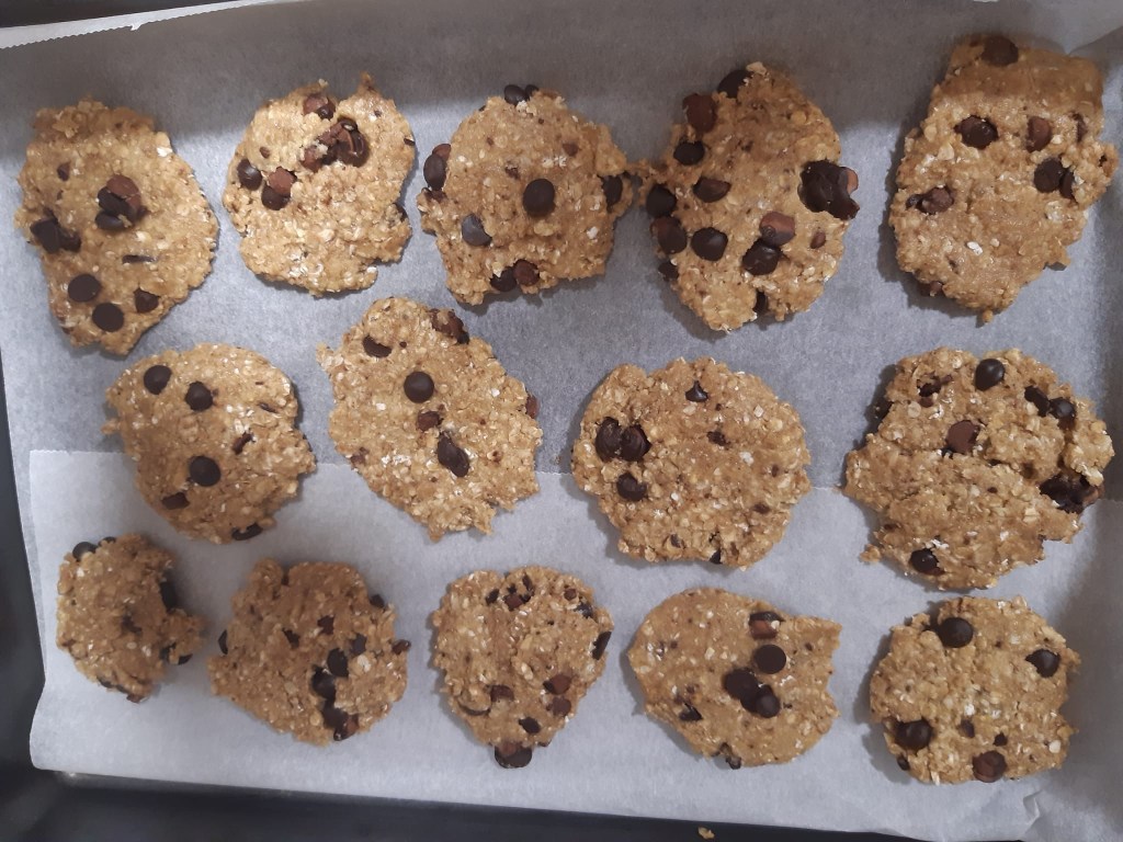 Luego es ir haciendo bolitas y aplastarlas un poco en la misma bandeja del horno (siempre poner papel de horno) y hornear durante 20 minutos, o hasta que las veas bien doradas.